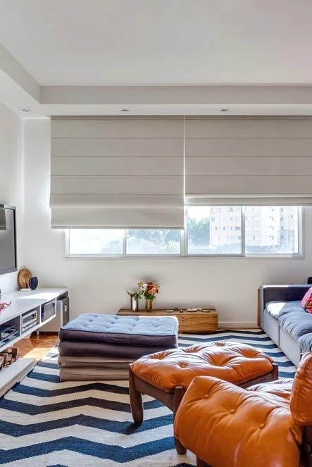 Estores romanos con tejido opaco que cortan la luz y la visibilidad. Este tipo de estore es la solución perfecta para cuartos, una vez que garantizan total privacidad.