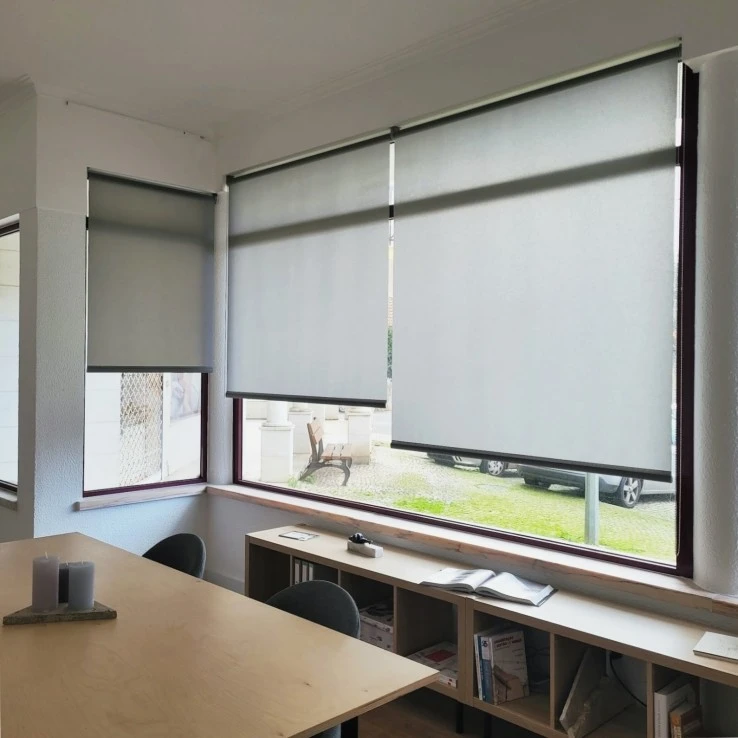 Tela translúcida de un solo color en poliéster, con buena transmisión de luz y excelente resistencia a la luz.